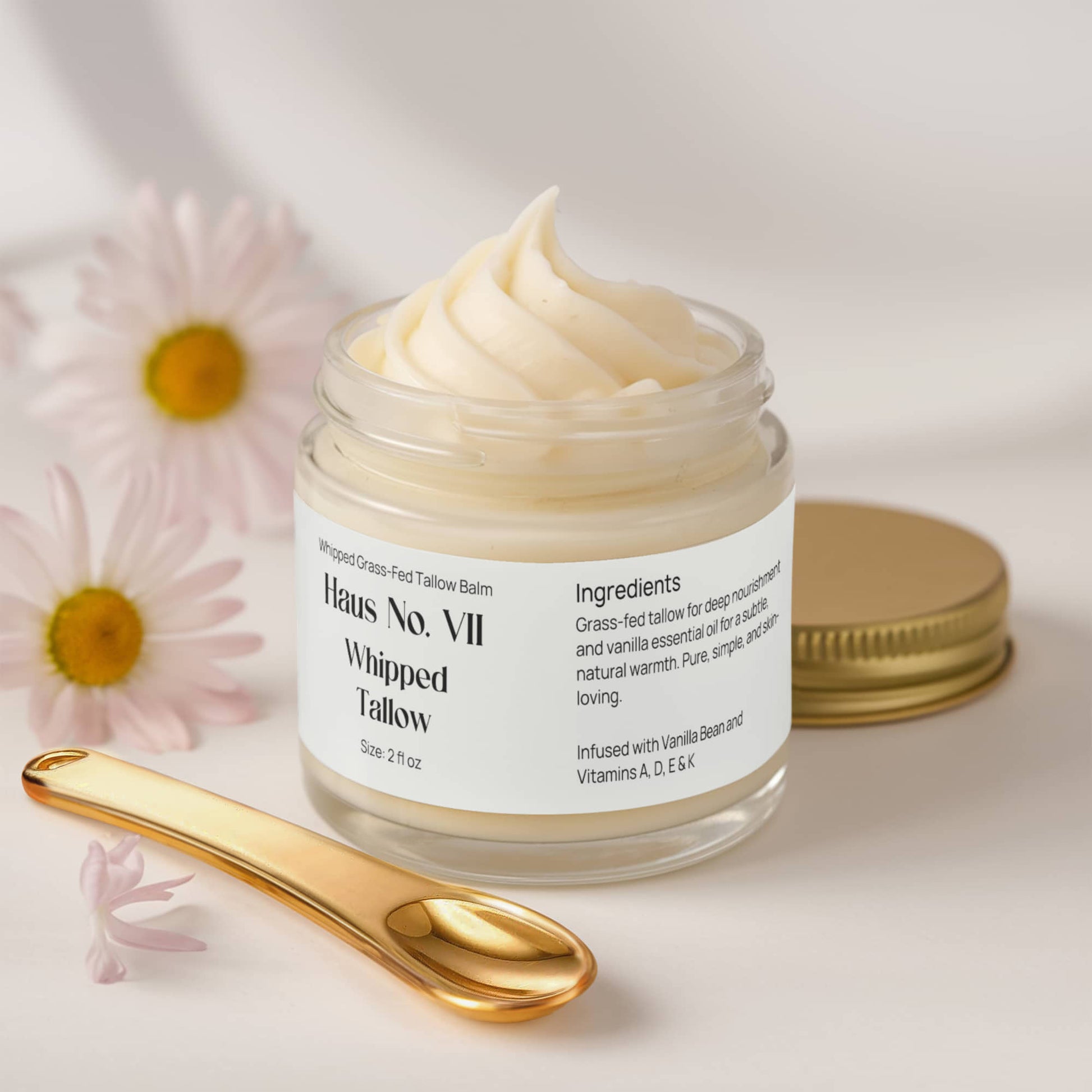 Grass-fed tallow for deep nourishment and vanilla essential oil for a subtle, natural warmth. Pure, simple, and skin-loving.
